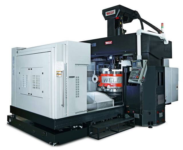 優越的車銑磨復合加工性能 本系列產品經過特別精心設計,只要一次設定,工件車、銑、磨,可以全自動加工完成! 崴立獨特設計的大齒盤刀具,以及高荷載之液靜壓軸承工作臺,可承載粗重切削,加工效率高。 工作臺Cs軸分度精度高,正逆轉非常靈敏,背隙值低於3"弧秒。 X/W/Z三軸均采用方型鑄件鋼鐵硬軌,具備高剛性重切削性能。 W軸橫梁的升降采同步雙伺服驅動,可在行程中任一位置定位後,以強力油壓夾持固